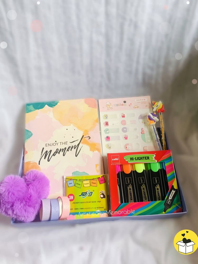 Perfect for birthdays or as return gifts, these hampers are packed with creative and fun stationery. Each box can be customized with items like notebooks, colorful markers, cartoon pens, stickers, and sweet treats to delight any child or teen.