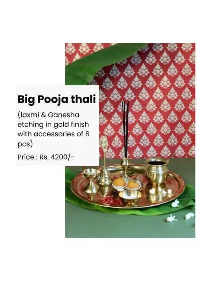 Create a serene and sacred space with my handcrafted spiritual decor. This collection includes complete pooja thali sets in nickel and gold finishes, elegant Lakshmi & Ganesha idols, and decorative urlis perfect for floating flowers or diyas.