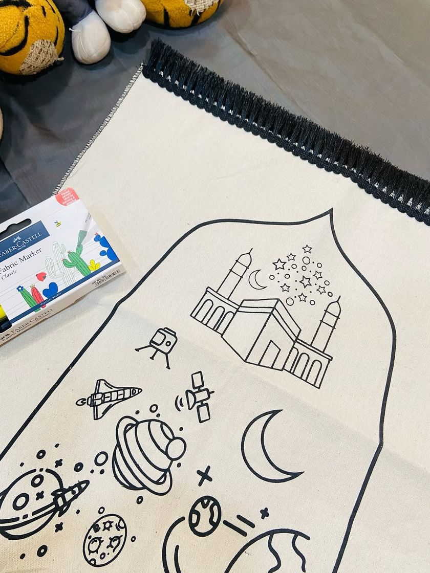 Nurture a love for faith in the younger generation with my child-friendly prayer sets. This includes unique color-in prayer mats with fabric markers and adorable, personalized mini tasbeehs to make their spiritual journey fun and engaging.