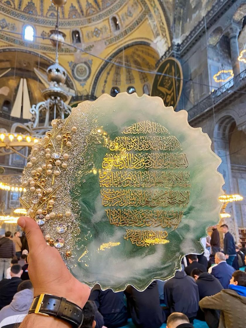 I believe my art carries a spiritual essence, and I've been blessed to take these pieces to some of the most sacred places in the world. This collection shows my creations at holy sites like the Kaaba in Makkah and the Hagia Sophia in Turkey.