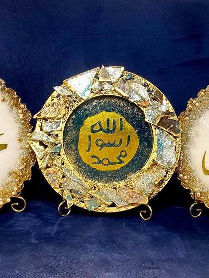 Perfect for adding a touch of spiritual elegance to smaller spaces like desks, shelves, or office tables. This collection includes compact resin plaques featuring 'Allah & Mohammed' calligraphy, the Mohr e Nabuwat, and semi-circular 'Mashallah' frames.