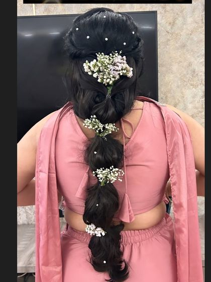 I specialize in creating intricate bridal hairstyles ranging from traditional braids and adorned buns to modern styles like soft waves and bubble braids. My service includes styling with flowers, accessories, and hair extensions when needed.