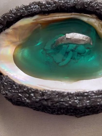 Each piece is carefully crafted using specialized pouring and sanding techniques to achieve a smooth, glossy finish. I incorporate natural elements like stones and pearls for added texture and visual interest.
