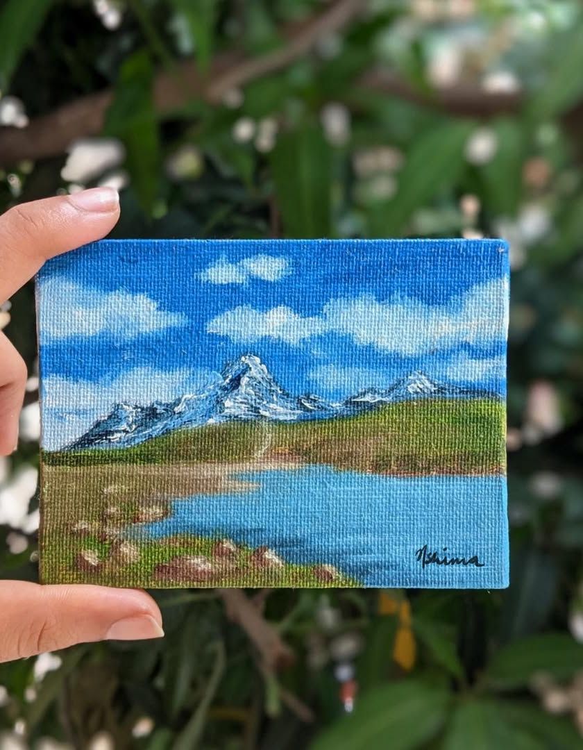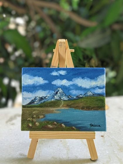 I love capturing the feeling of being in the pahad. These miniature oil paintings are perfect for keeping a piece of your favorite mountain escape or serene lakeside memory with you, painted from your photos or my travel inspirations. I focus on capturing the light and atmosphere, from bright sunny days to the quiet of a mountain stream.