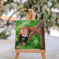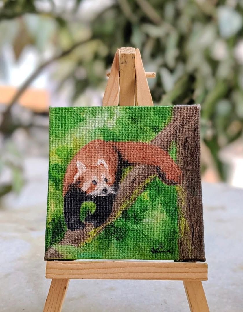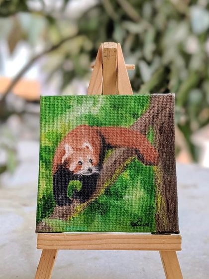 I have a soft spot for painting our furry friends. This Red Panda was inspired by a trip to Darjeeling. I can create a custom miniature portrait of your pet or a favorite animal, focusing on capturing their unique personality on a tiny canvas.