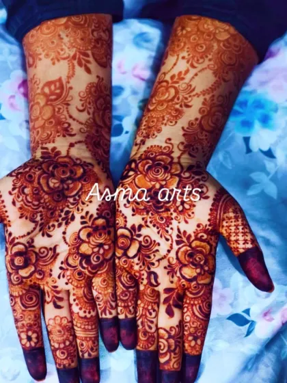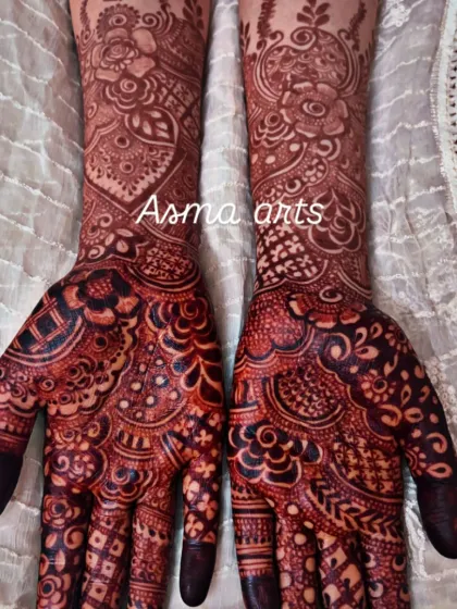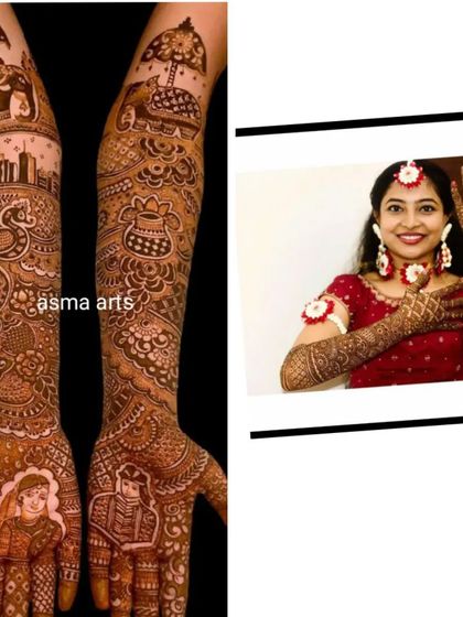 Hey, I'm Asma. Mehendi is my world, honestly. Sometimes I still can't believe I got to do mehendi for Rakshitha ma'am and Meghnaraj, and families who trust me with their big day. That Best Women Achiever award? Big moment, but nothing beats hearing 'Asma, I love my mehendi!' from my clients. That's my real trophy. You want mehendi with heart, I'm here.
