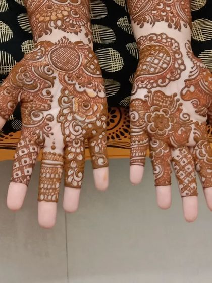 I specialize in creating themed henna designs perfect for baby shower celebrations. My designs incorporate special motifs like "Mom to Be" and "Dad to Be" along with traditional patterns using 100% organic mehendi.