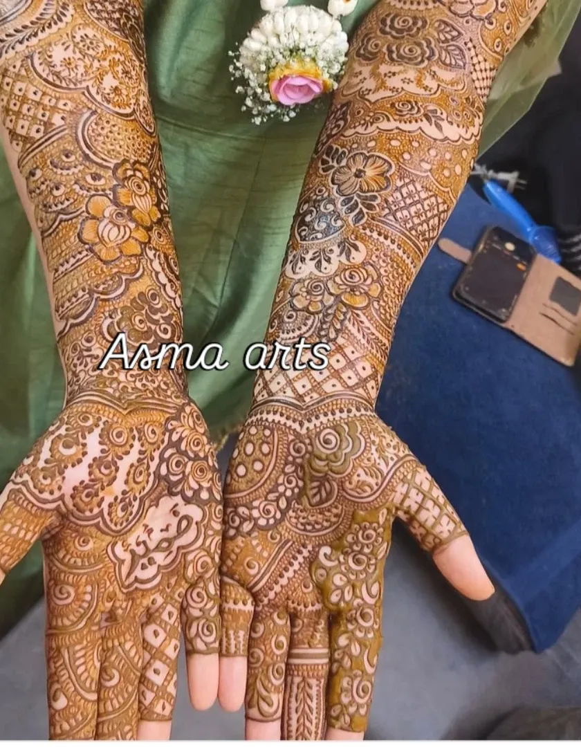 For those who love the classic beauty of mehendi, I create dense and detailed patterns. These designs feature traditional motifs like florals, paisleys, and delicate latticework for a timeless look.