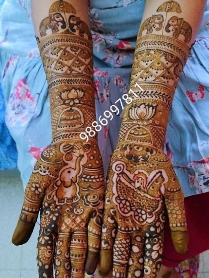 I specialize in creating beautiful henna designs for group celebrations and pre-wedding functions. Using 100% organic mehendi, I create intricate traditional motifs including paisleys, florals, and geometric patterns.