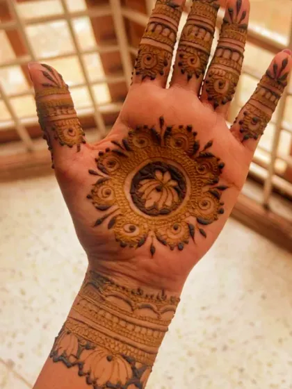 I specialize in detailed, full-coverage mehendi that extends from the hands to the elbows. These designs are perfect for major celebrations, featuring classic Indian motifs like florals, paisleys, and intricate netting (jaali work).