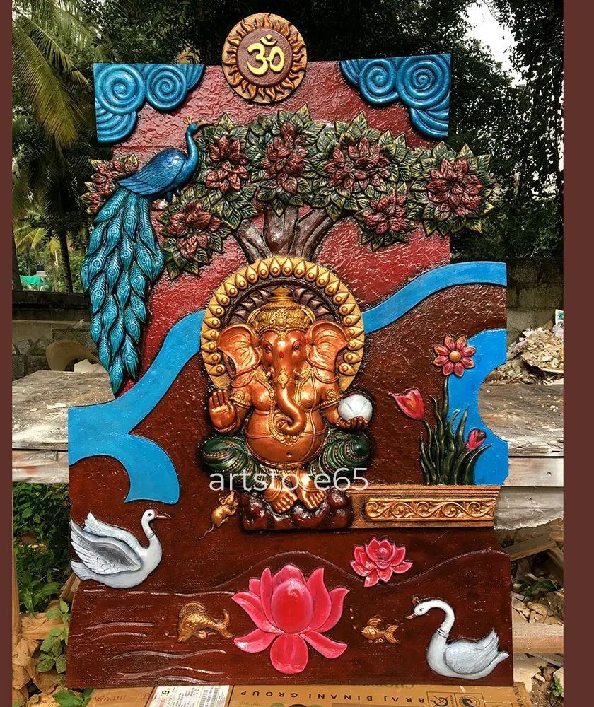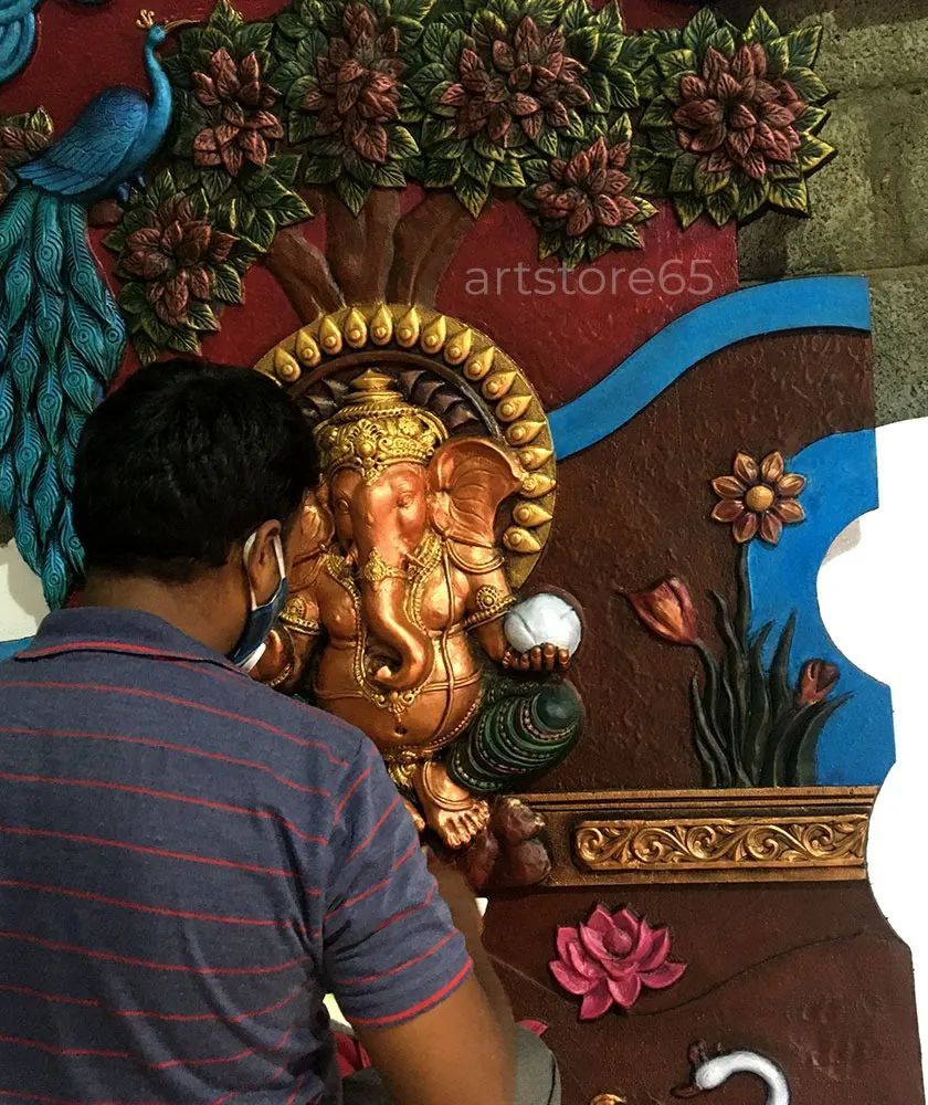 We create custom, handcrafted deity sculptures for pooja rooms, home entrances, and exterior walls. These pieces are made from durable and lightweight FRP material, making them suitable for both indoor and outdoor placement. We can design murals for any deity you worship, including Ganesha and Saraswati, with fully customized sizes and colors.
