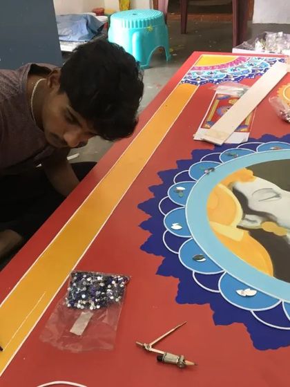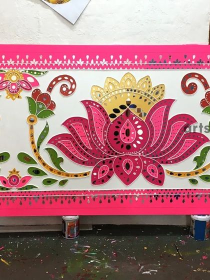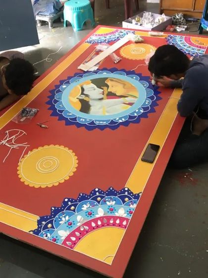 - We do classic geometric patterns, bold floral motifs (think lotus), calming mandala Lippan design, and even mythological scenes like Radha-Krishna - all handcrafted, no shortcuts.