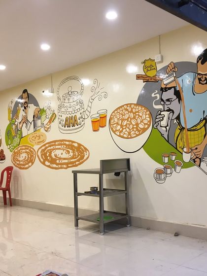 - Doodle art: Like those detailed collage walls you see in cafes, line art, sometimes all black and white. We did a 'Namma Bengaluru' (Our Bengaluru) mural once, loaded with city icons.
