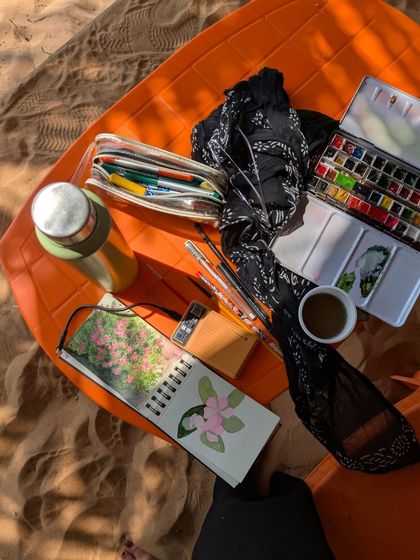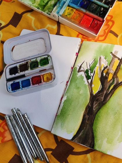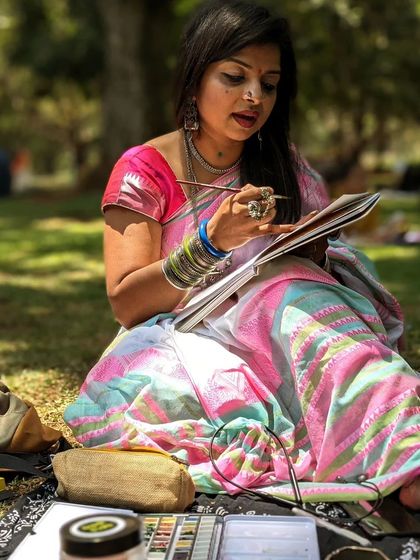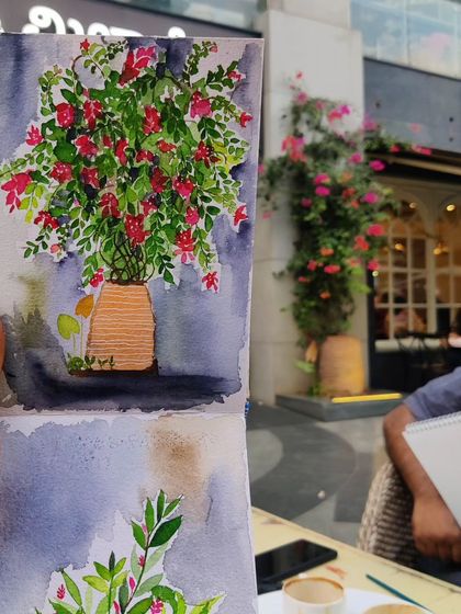 I host easygoing art workshops outdoors at Cubbon Park where anyone can join, try out floral watercolors, and paint together without any pressure; I also set up custom sessions for groups at offices or events.