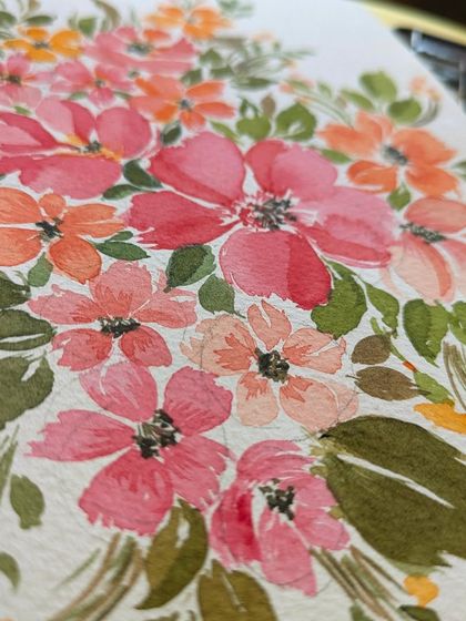 I work on commission, so you get art that’s totally your own. Most days, you’ll find me painting florals - roses, magnolias, even periwinkles. If you want a botanical watercolor illustration or a romantic couple portrait, I’m all in. Nature scenes, koi ponds, and dreamy sunsets are my jam too.