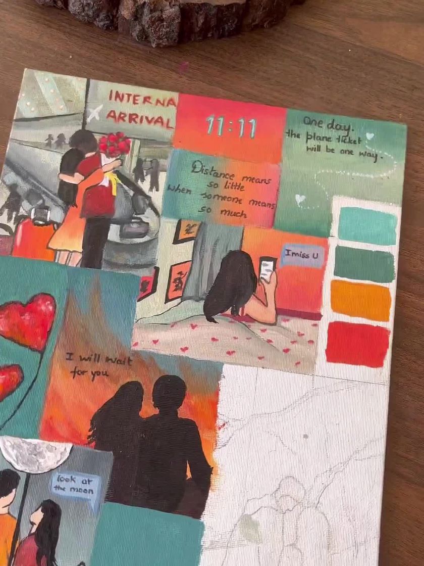 I create story-style collages by painting a collection of your favorite memories, moments, and inside jokes into different panels on one canvas. These are especially popular with long-distance couples and for milestone birthdays, telling a whole story in a single frame.