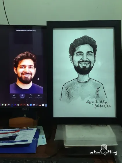 Hey! We’re the folks at Artude. Our thing? Making art that feels personal, like gifting a memory. Bangalore is home, and nothing beats watching someone light up when they see their caricature – once, a customer went, ‘In pencil sketch-ah?’ (Is it in pencil sketch?) and that joy sticks with us. We’ve drawn for weddings, then for baby birthdays, and every time it feels like we’re part of the celebration. Our art is all heart, whether it’s a big event or just a small surprise.