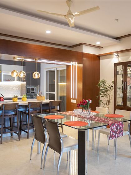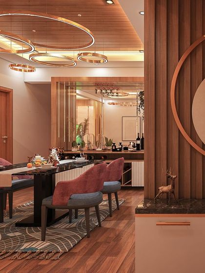 We specialize in creating luxurious and functional kitchen and dining spaces. Our designs incorporate premium materials like quartzite for durability, innovative storage solutions, and custom crockery units featuring rattan, glass, and marble elements.