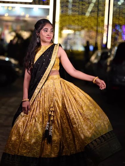 Perfect for sangeets, receptions, or any grand celebration, I design custom half sarees and lehengas that are all about making a statement. We can play with traditional Banarasi silks or modern fabrics, creating a full ensemble that fits you perfectly.