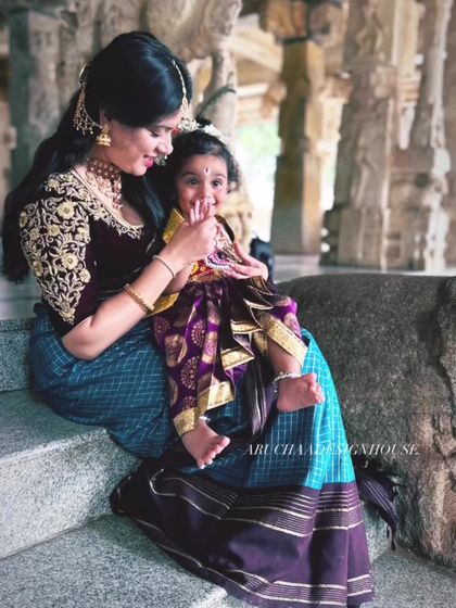- Outfit 2 (Daughter - Upto 5 Yrs): Creation of a matching Pattu Pavadai (Long skirt & Top) or a mini-Gown.