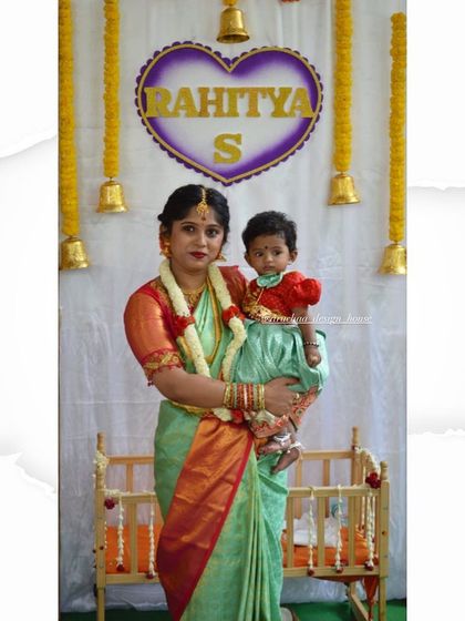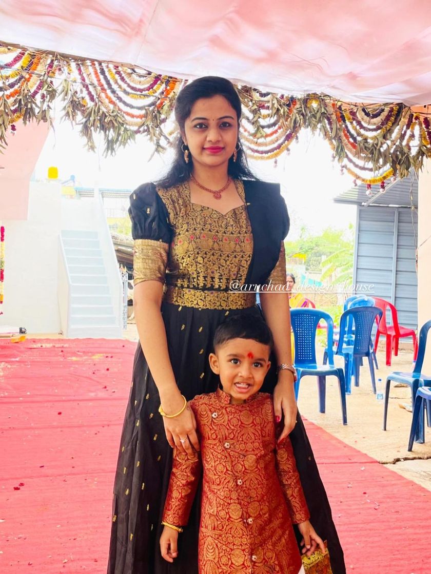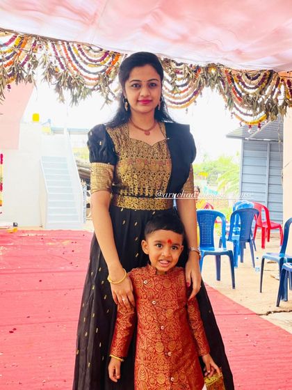 I love creating coordinated outfits that celebrate the special bond between a mother and her child. Using elements from a single family saree or complementary fabrics, we can design matching traditional sets perfect for photoshoots, festivals, and family functions.