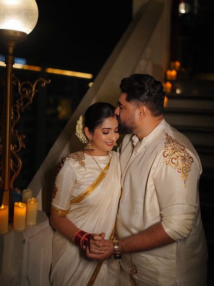 - Styling: Color consultation to match the specific shade of the bride's saree (Cream, Sandalwood, Gold, or Pastels).