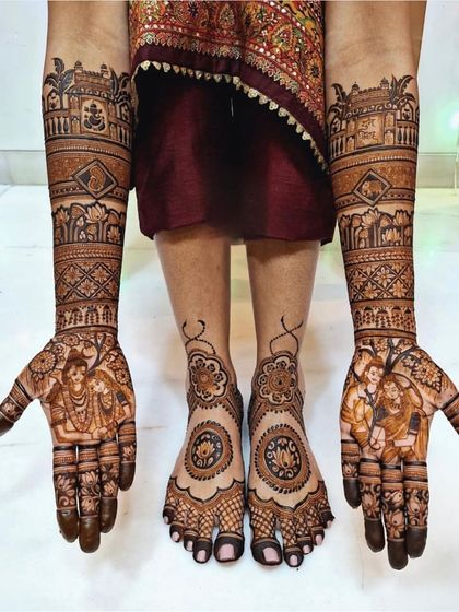 Custom Story-Based Mehndi Design - Aapka idea, hamara design - love story ho ya koi symbol, mehndi ko personal banate hain.