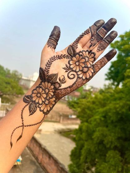We offer a wide range of styles beyond full bridal. Explore our collection of graceful Arabic henna trails (bel), bold Indo-Western patterns, and beautiful floral designs, perfect for bridesmaids, family members, or any festive occasion.