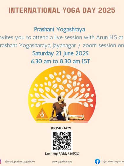 Join me for multi-day residential retreats at our Prashant Yogashraya centre in Ramanagara, just outside Bangalore. These immersions in a serene, natural setting include intensive Iyengar yoga practice, all meals, and accommodation, allowing you to disconnect and deepen your practice.