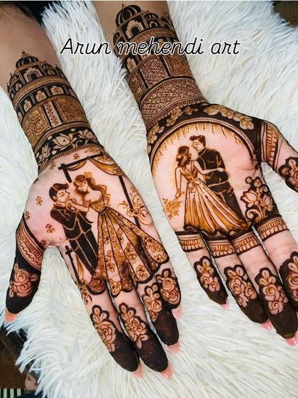 Your Story in Mehendi - Aap apni kahani batao, main mehendi mein bana dunga. Special symbols ya couple portraits bhi possible hain.