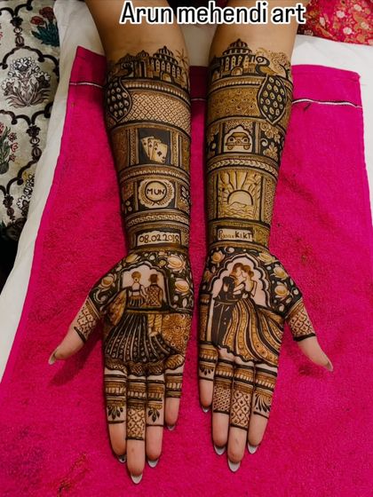 Your mehendi should tell your story. I specialize in creating custom portraits of you and your partner, capturing special moments like the varmala ceremony, or even including your family in the design. Bas batao, main bana dunga.