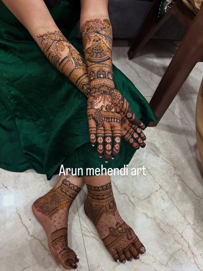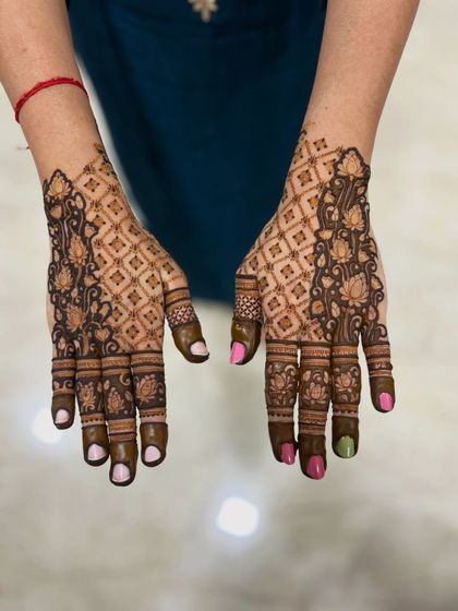 I provide full bridal mehendi packages that create a cohesive and stunning look from your hands to your feet. We can design them to match perfectly or have complementary themes that flow together beautifully.