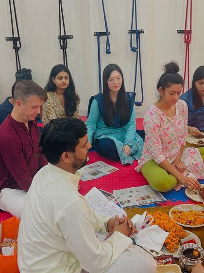 This course is an *andar ka badlav* (inner change), with a solid focus on yogic philosophy, meditation, and traditional rituals. We begin our journey with a sacred Havan ceremony and delve into the Yoga Sutras, the eight limbs, and the paths of Karma, Bhakti, and Gyan Yog.