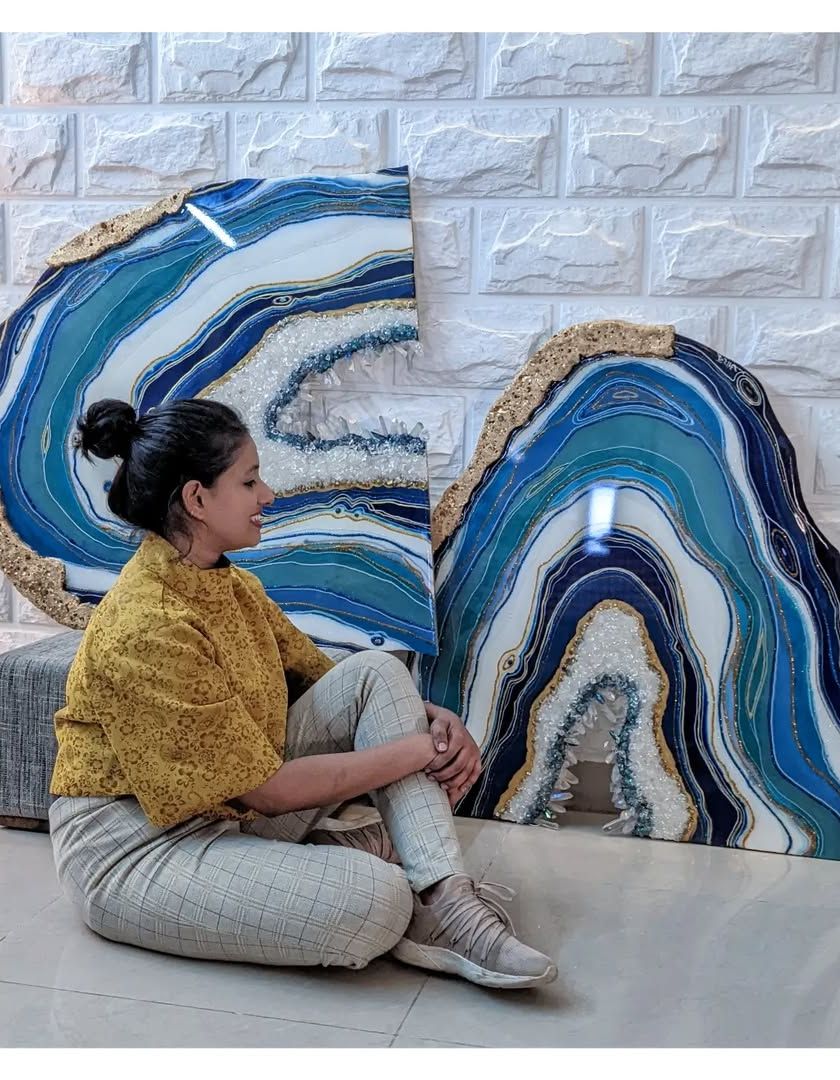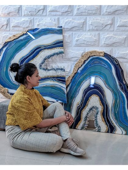 I am obsessed with the glossy, layered look of resin. I create geode-inspired art using real or resin crystals and gold accents, exploring concepts like ‘Broken Yet Whole’ to bring a unique energy to your space.