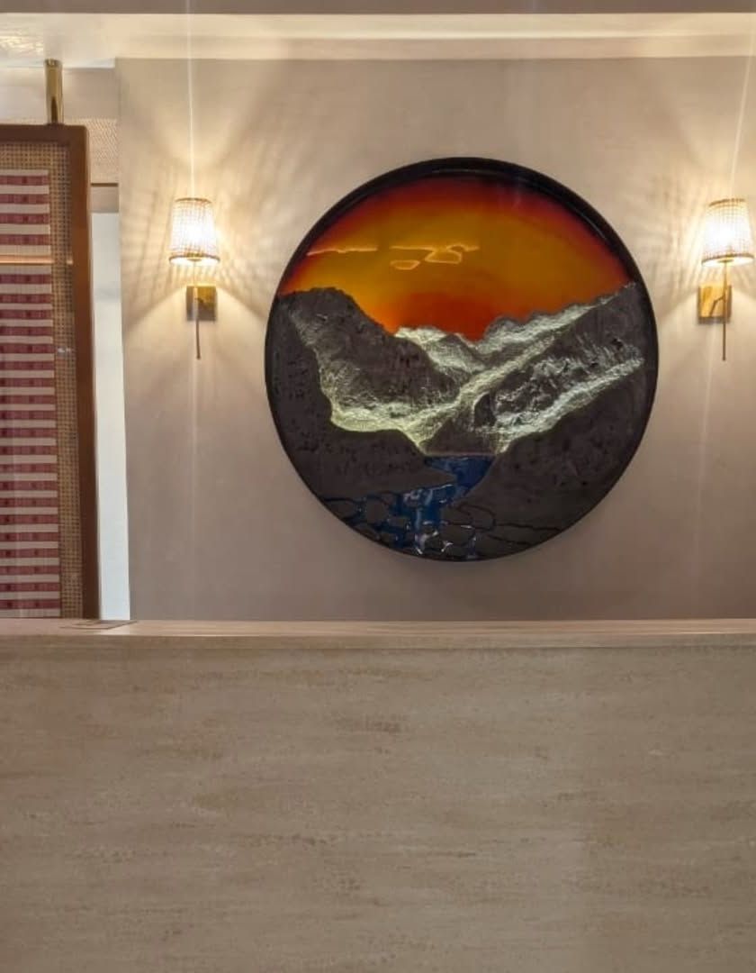 For those who want art they can almost feel, I love working with textures and different materials. I create custom pieces using resin, crystals, and other elements to add depth and a unique tactile quality to your walls, like my geode-inspired art or landscape murals.