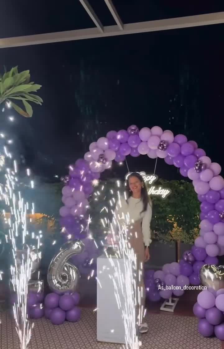 For milestone birthdays or anyone wanting a chic and stylish celebration, I design elegant backdrops that serve as the perfect centerpiece and photo booth for your event. This service focuses on creating sophisticated photo-worthy backdrops using large balloon rings and arches. I incorporate elements like custom neon signs, unique color combinations like purple or rose gold, and special accents like butterfly foils or pyrotechnics.
