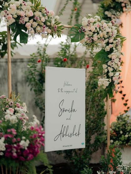For contemporary tastes, I design clean, elegant, and sophisticated decor. This includes lush floral backdrops, personalized signage, and curated color palettes that are perfect for resort engagements, receptions, and chic city weddings in Bengaluru.
