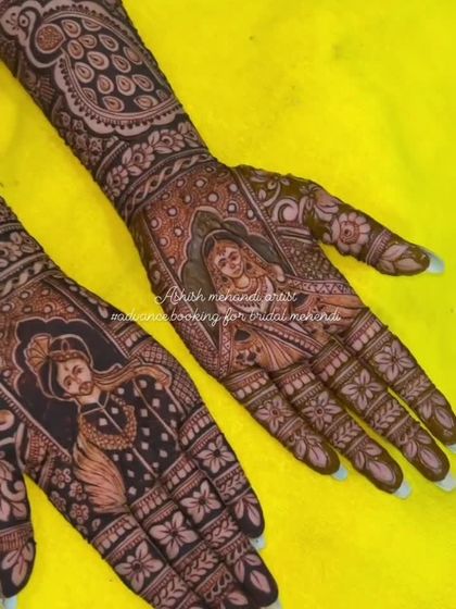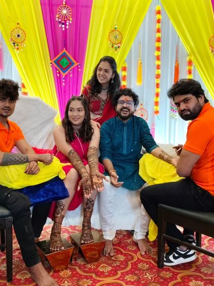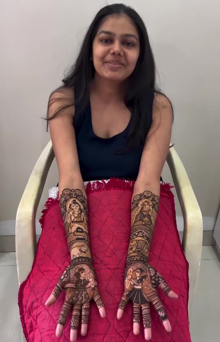 I specialize in creating personalized mehandi that tells your unique story. From detailed portraits of the bride and groom to figures of your family and depictions of special moments, I can draw anything you imagine on your hands.