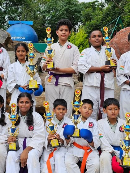 We’re Ashoka Martial Arts Academy, but honestly, it feels more like home than a school. You’ll see us together - students, me, sometimes my daughter Prarthana (she’s a karate champ, proud dad moment!) - training, playing drums, celebrating wins and losses. We travel, we compete, we learn. Sometimes I take a break, shave my head, go spiritual. For us, it’s all about balance - tough training, real fun, and growing together.