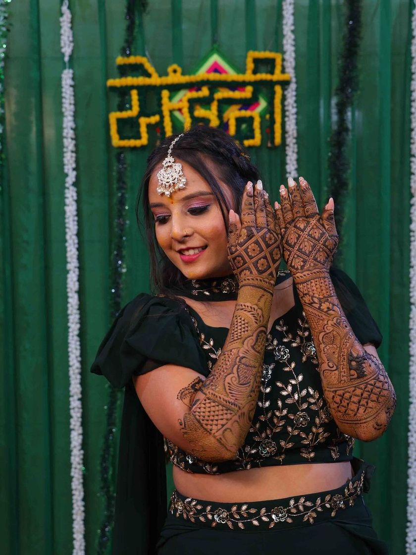 Your bridal mehndi should be as unique as your love story. I specialize in weaving personal elements like couple portraits, names, special dates, or even your wedding hashtag directly into the design.