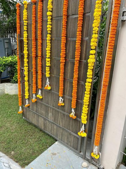 I do fresh flower decoration for offices and commercial buildings in Gurgaon, using marigold garlands and torans for both interiors and exteriors, with a focus on simple and traditional style.