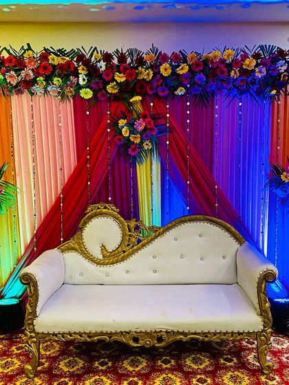 - Stage Setup: I handle the main stage for the shaadi or reception. Expect layers of colorful drapes, big flower arrangements (mostly gerberas), and a vintage sofa for the couple. Carpet and spotlights, too, so your photos pop.