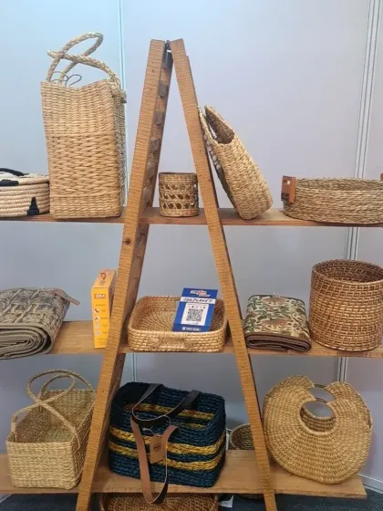 We offer everyday sustainable products made by local artisans using bamboo, cane, and natural fibers, with options for custom branding and bulk orders.