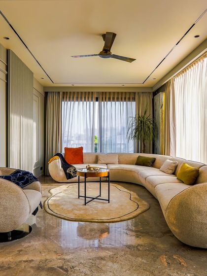 The living and dining areas are the heart of a home, and I design them to be both grand and inviting. This section highlights open-concept layouts, double-height spaces, and interiors ranging from warm minimalism with neutral palettes to neo-classical luxury with gold accents and statement chandeliers.