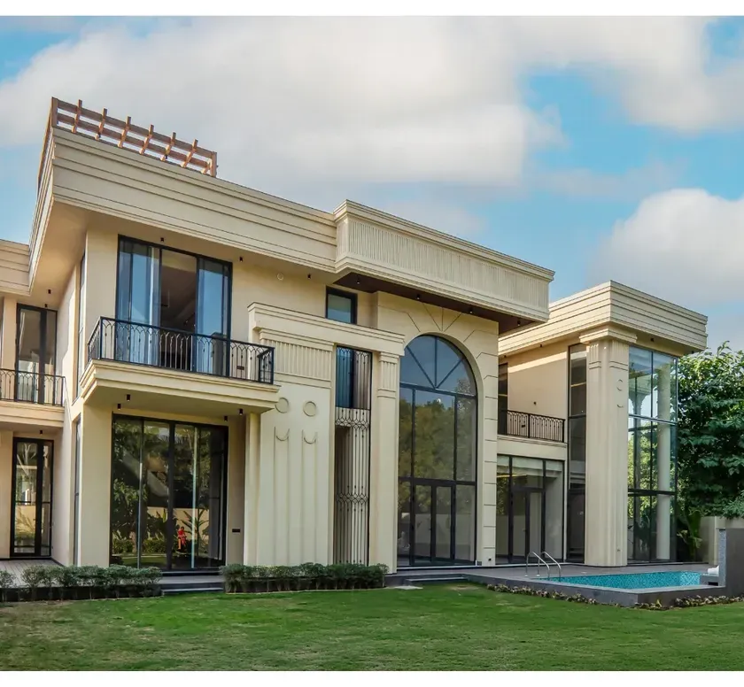 I specialize in creating expansive, statement homes that harmonize with their natural surroundings. This collection showcases my work on large-scale turnkey projects, from modern minimal farmhouses in the Aravallis to neo-classical estates in Delhi, focusing on fluid architecture and seamless indoor-outdoor living.