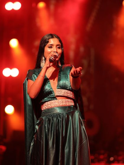 For those who love to experiment, I design modern and fusion outfits that blend Indian traditions with contemporary styles. This includes everything from elegant gowns and Indo-western stage outfits to chic crop tops with sequined pants. These are perfect for sangeets, cocktail parties, and performances.