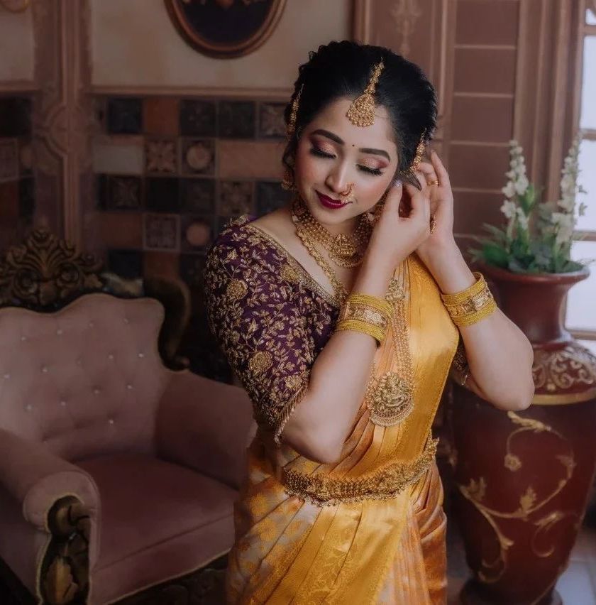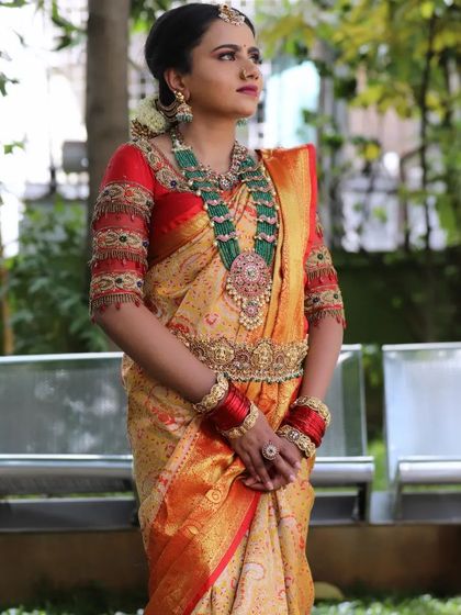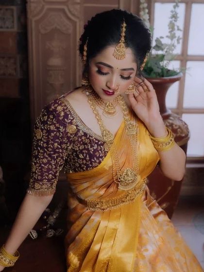 Discover my handpicked collection of pure Kanchipuram and rich silk sarees, perfect for your wedding day and other grand celebrations. Each saree features intricate zari work and traditional motifs, designed to make you feel like royalty.
