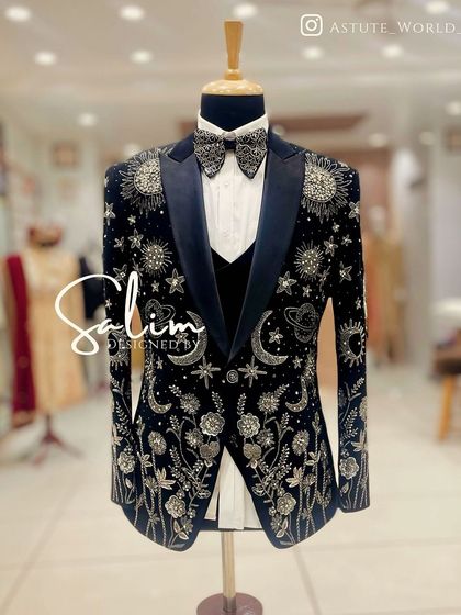 We design and tailor custom formal and occasion menswear in Delhi, including hand-embroidered blazers, statement tuxedos, and bespoke suits, all made to fit you and your style from scratch.