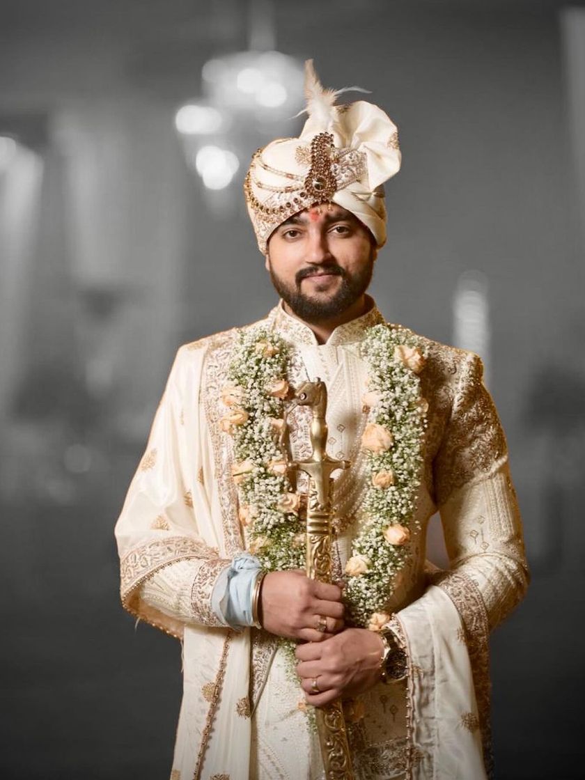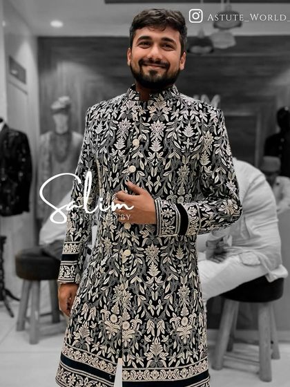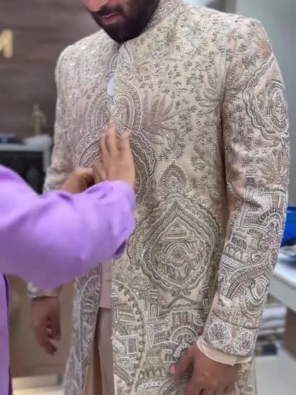 My main focus is creating the perfect sherwani for a groom's wedding day. Each piece is made to measure, ensuring a flawless fit. I work with a variety of fabrics and a rich palette of colors, from timeless ivories and golds to vibrant blues and reds, all featuring my signature heavy hand embroidery.