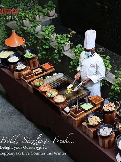 Cuisines From Everywhere - Coastal Indian catering, wood-fired pizza party, Pan-Asian teppanyaki, North Indian kebabs—your pick.